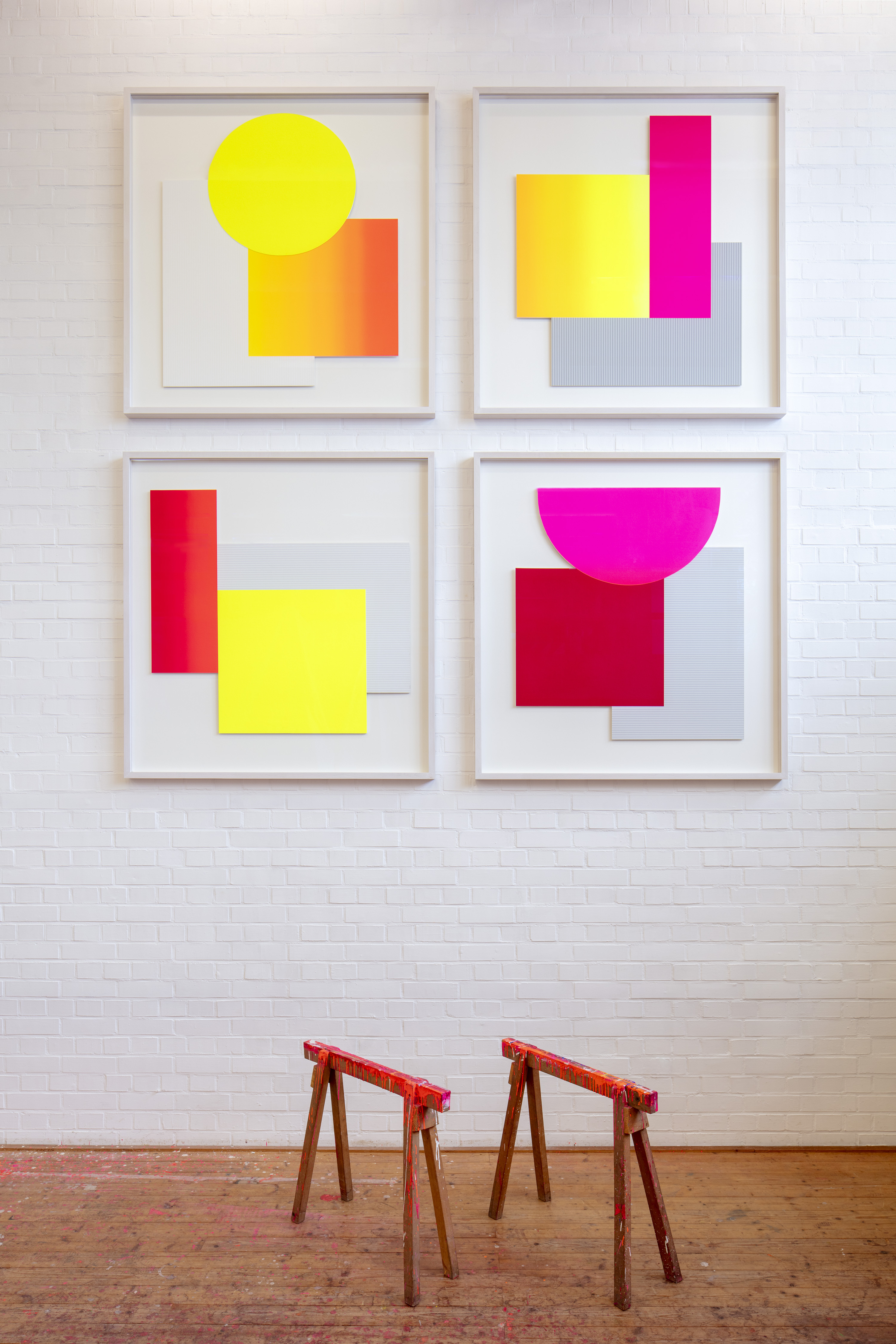 „Es freut mich sehr die Werke beider Künstler im Dialog in den Archivräumen zu zeigen. Götze verwirklichte über drei Jahrzehnte lang verschiedene, künstlerische Ideen meines Großvaters präzis und kreativ um. Und so entstanden in der Zeit viele leuchtende Editionen auf Papier oder Leinwand sowie farbintensive Multiples auf Holz“, erklärt Julia Geiger, die Leiterin vom Archiv Geiger, die oft die beiden vertieft bei den unterschiedlichsten Projekten im Atelier antraf.